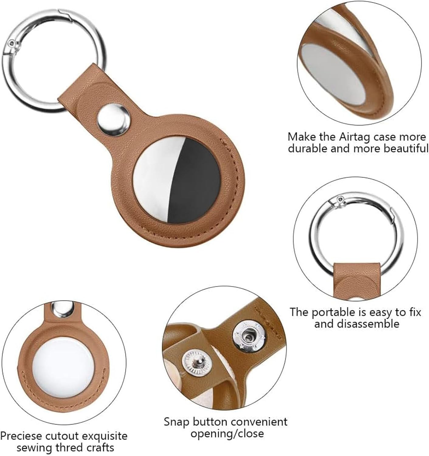La conception de cet étui est simple et discrète, avec une finition en cuir lisse qui ajoute une touche de sophistication à votre AirTag. Il est disponible en plusieurs couleurs, vous pouvez donc choisir celle qui correspond le mieux à votre style.